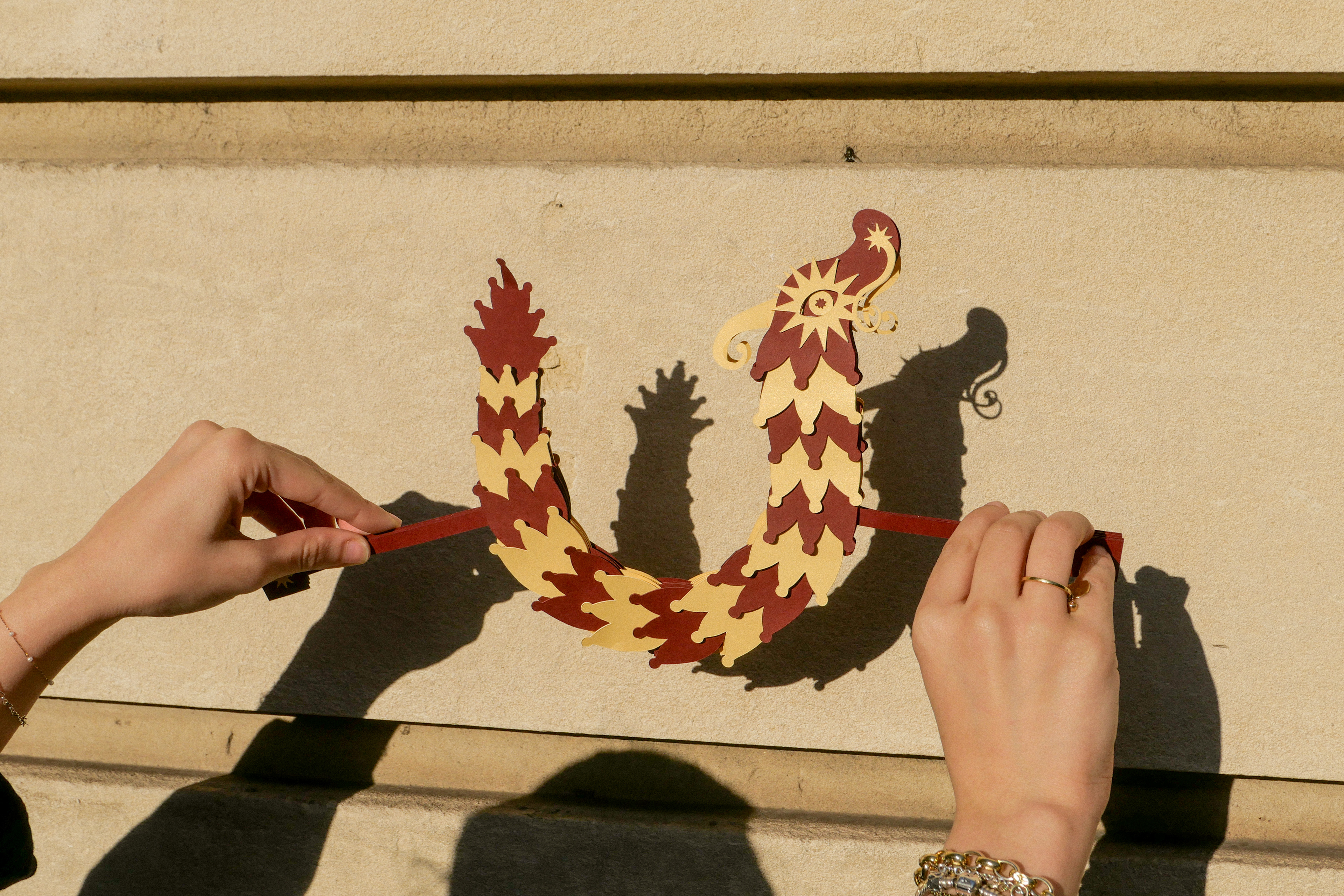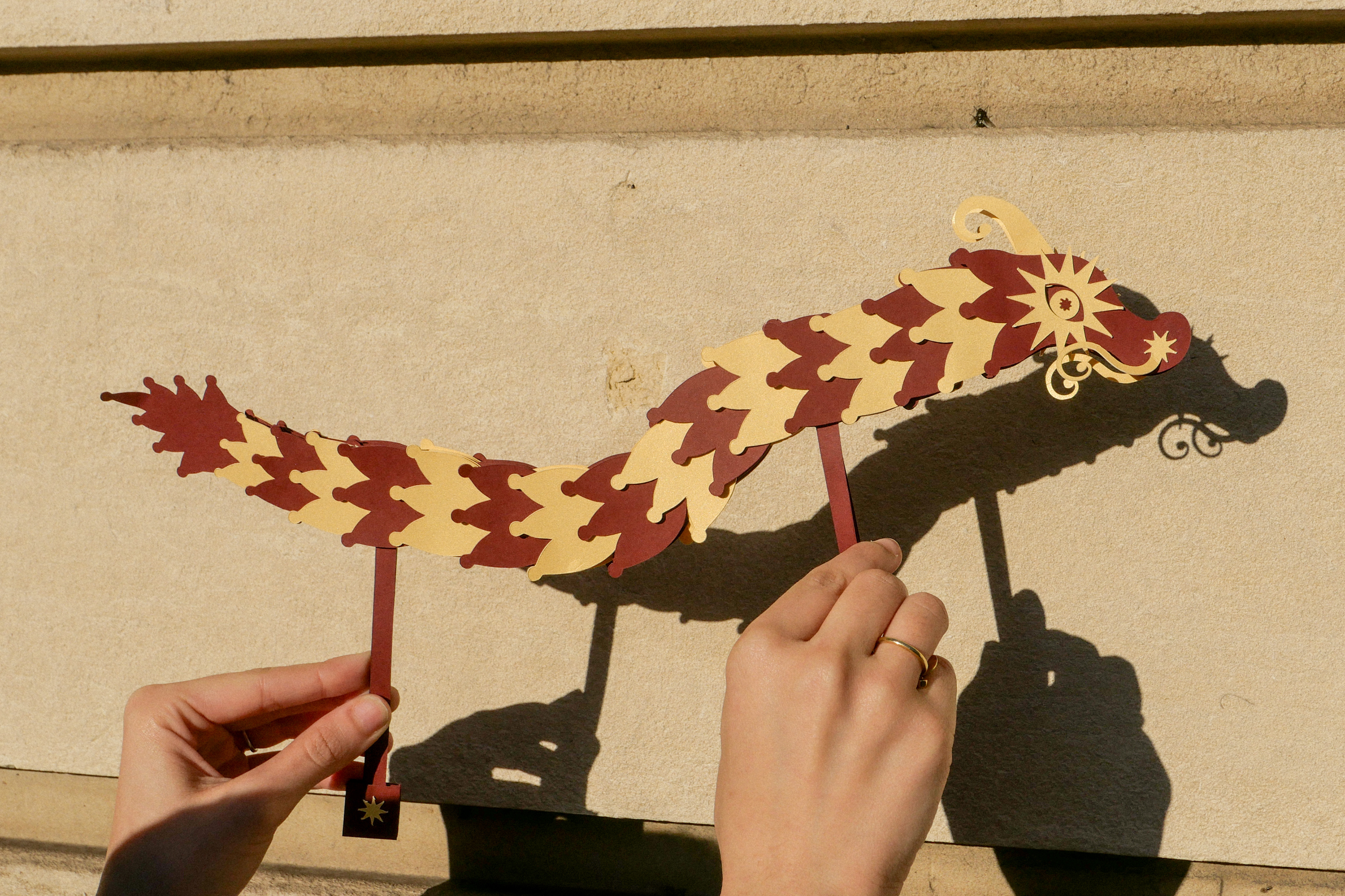 Created in celebration of the lunar new year dragon puppet performers. This little dragon can offer a sliver of the magic the performers do.