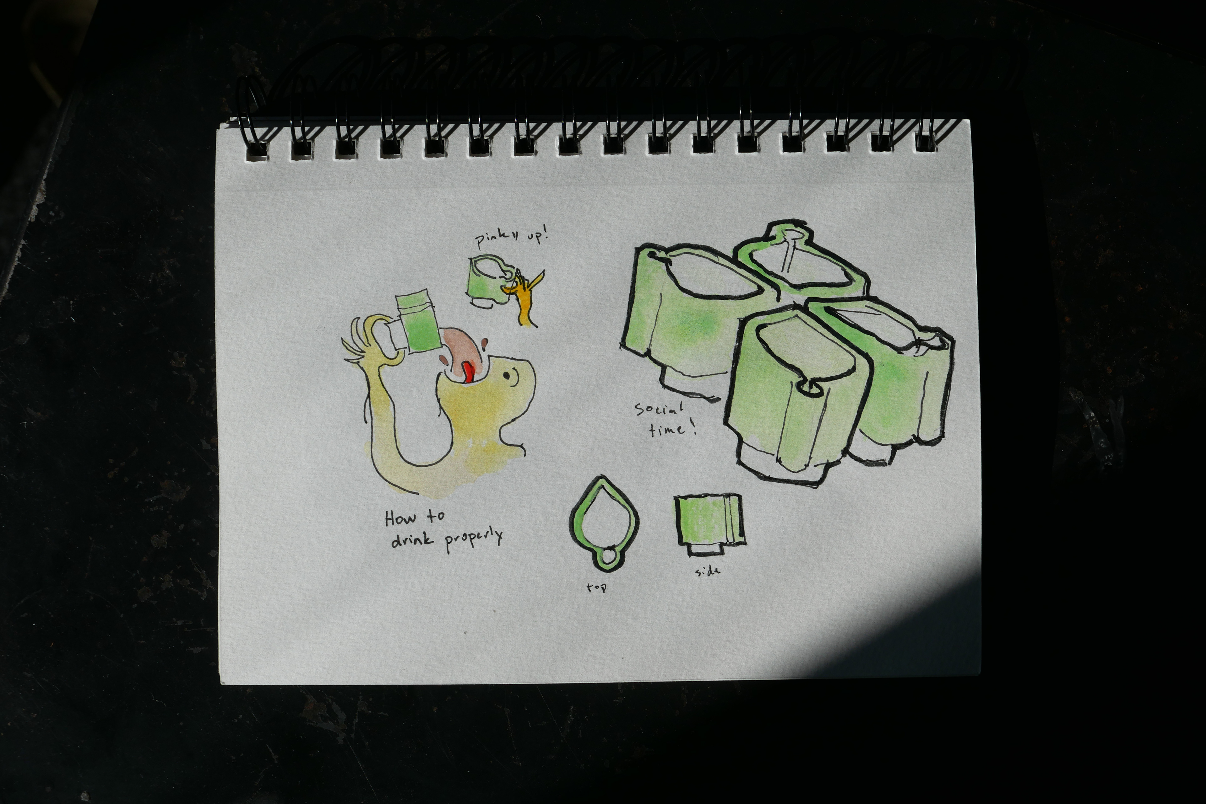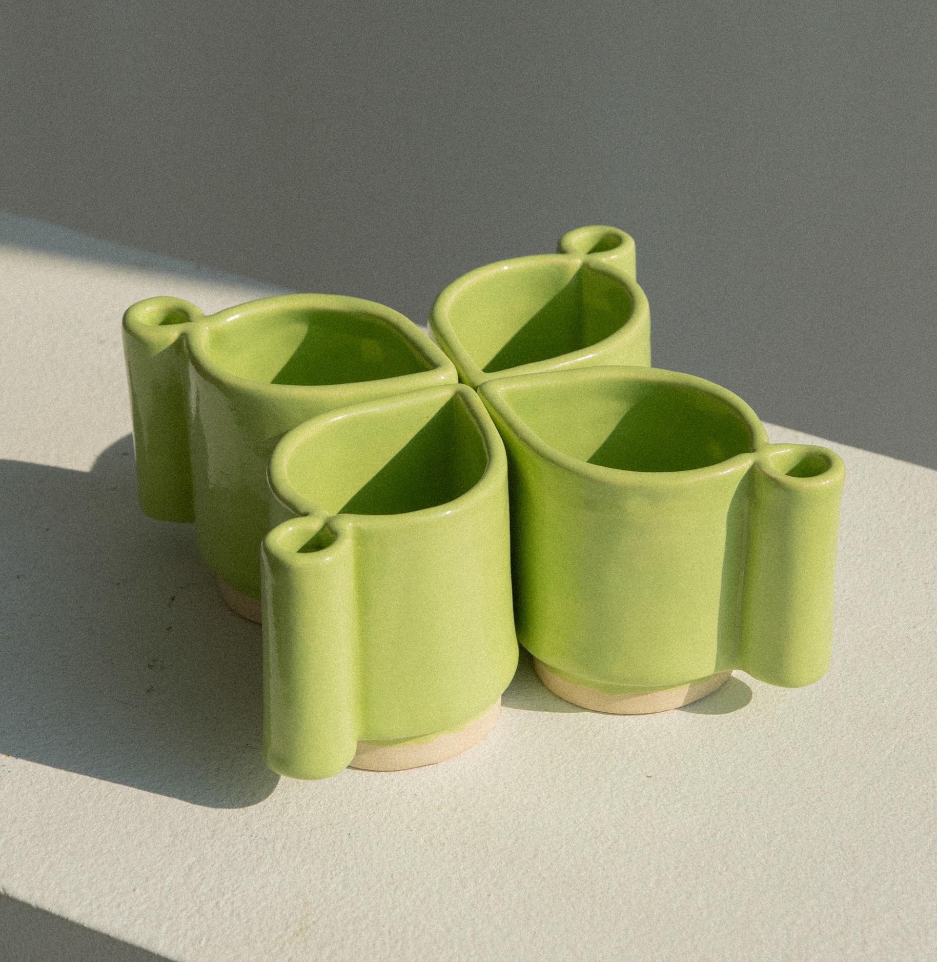 is an espresso cup that uses the motif of an extruded leaf. These mugs can come together to form a leaf pile. Don't jump in it though.