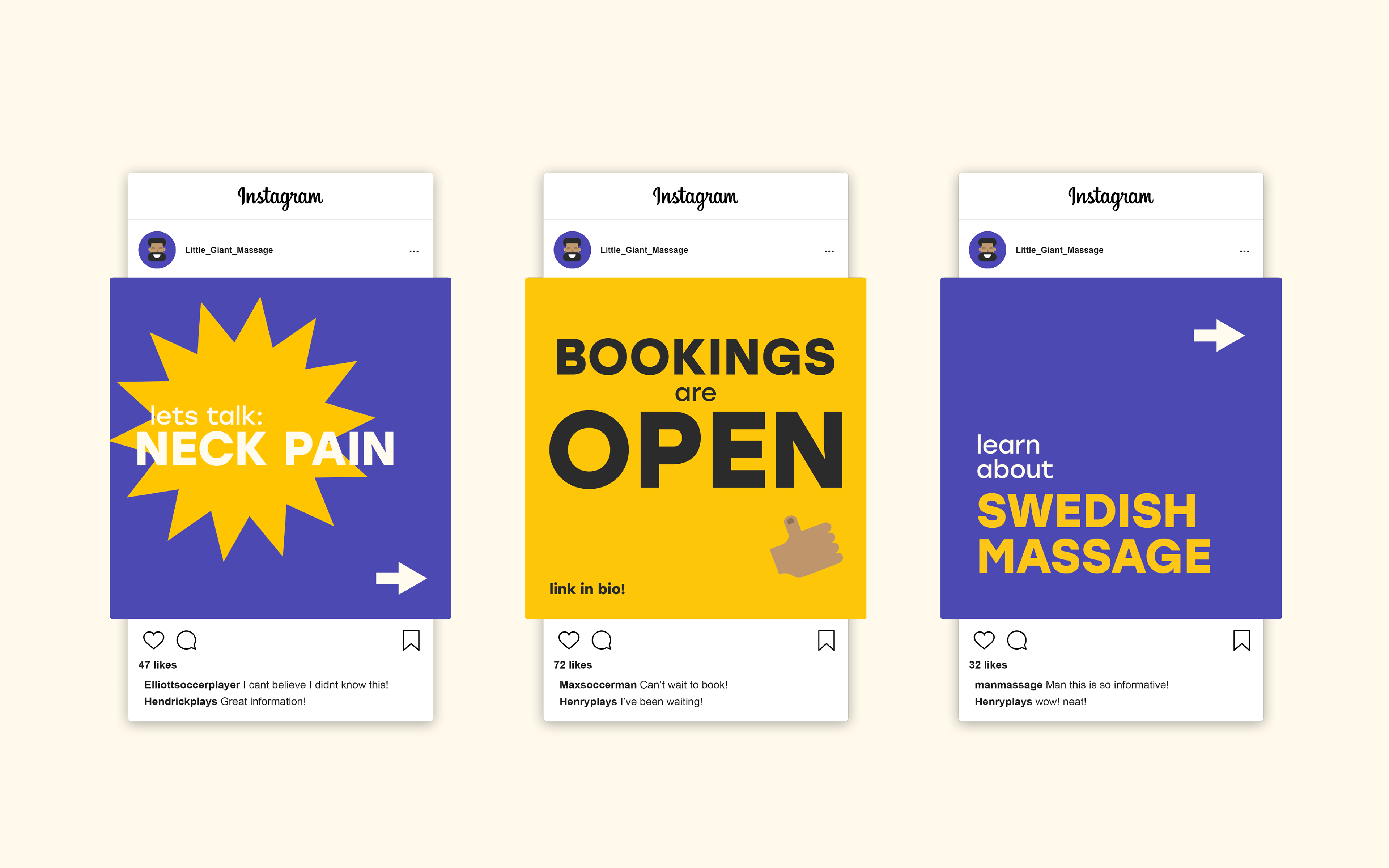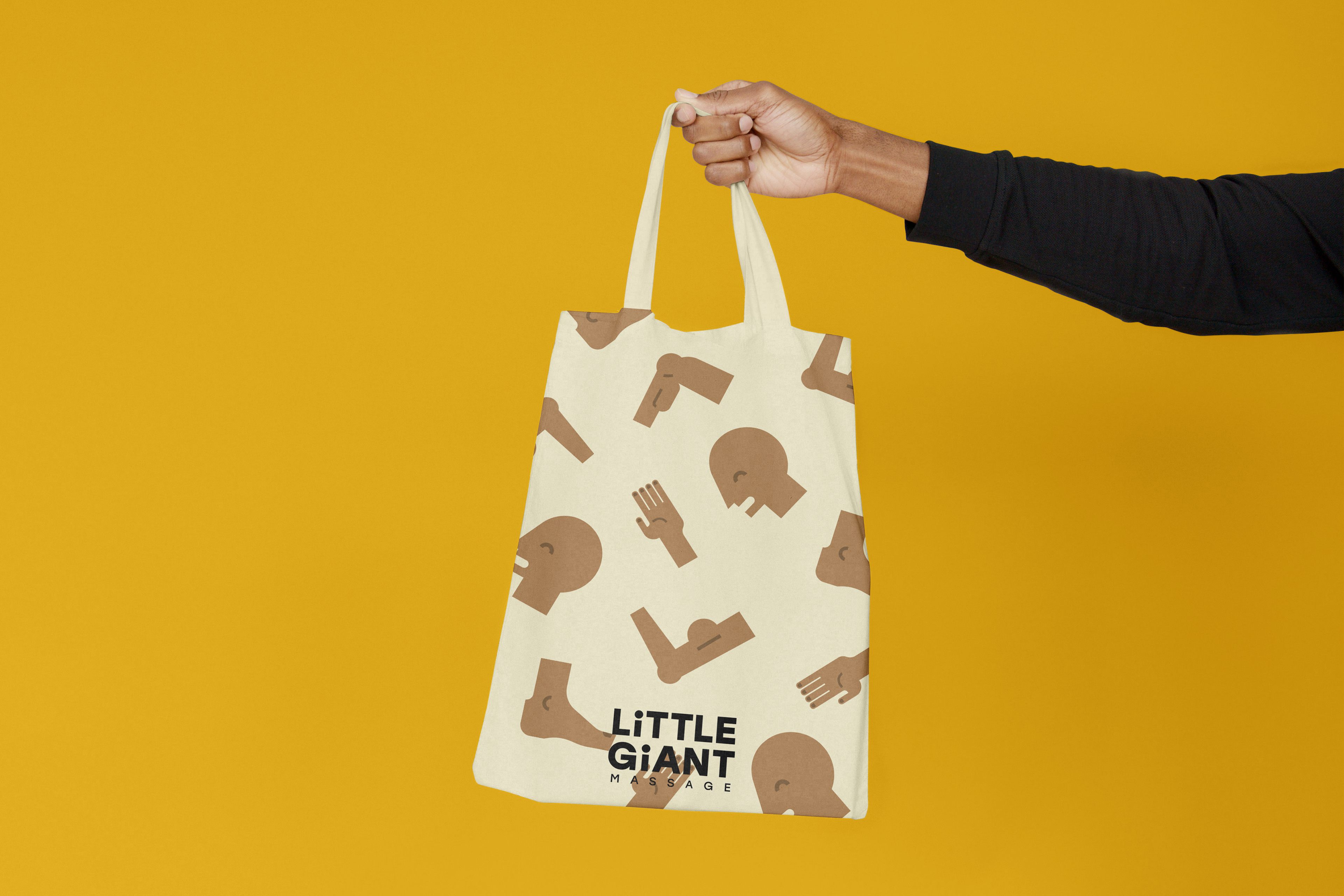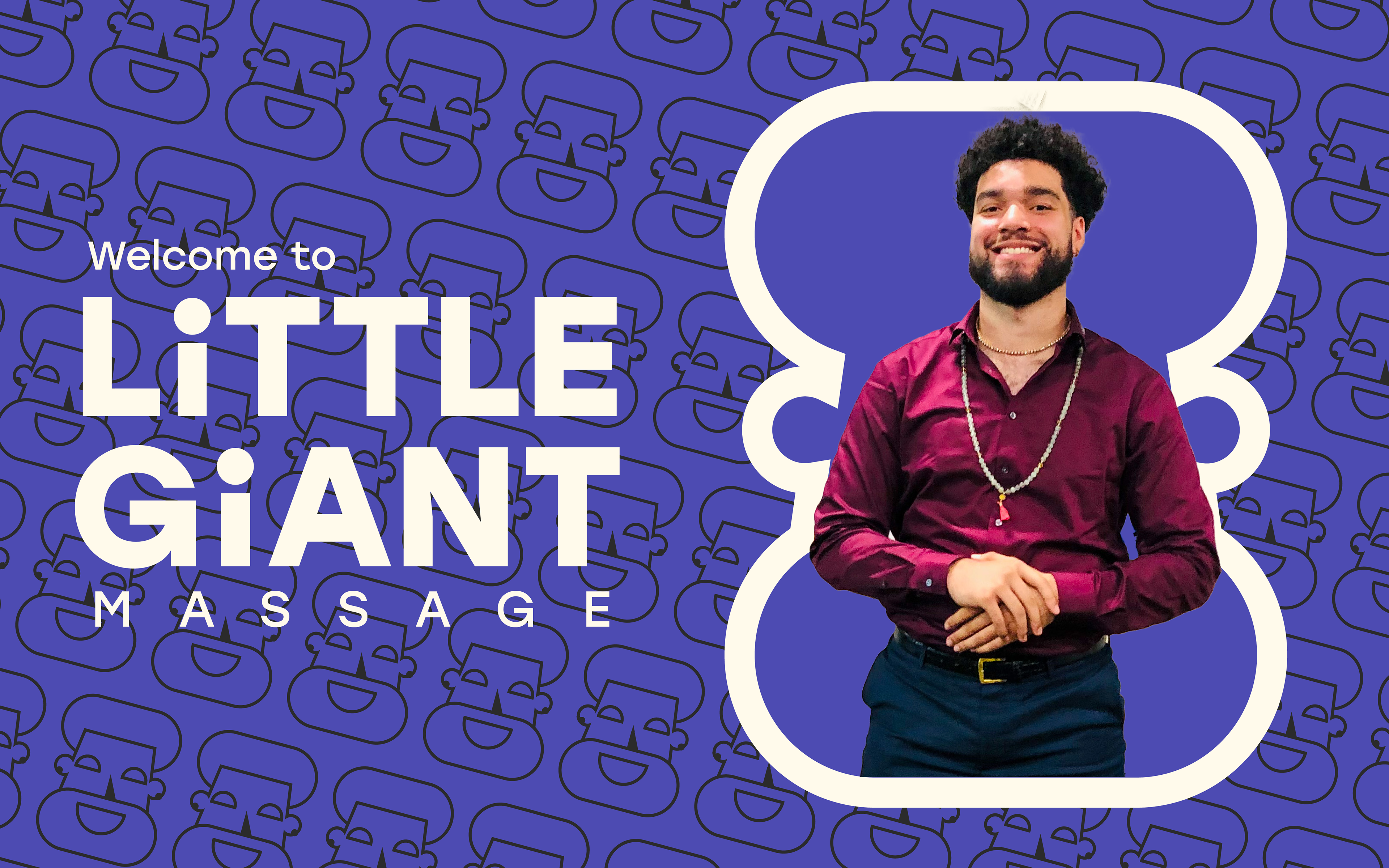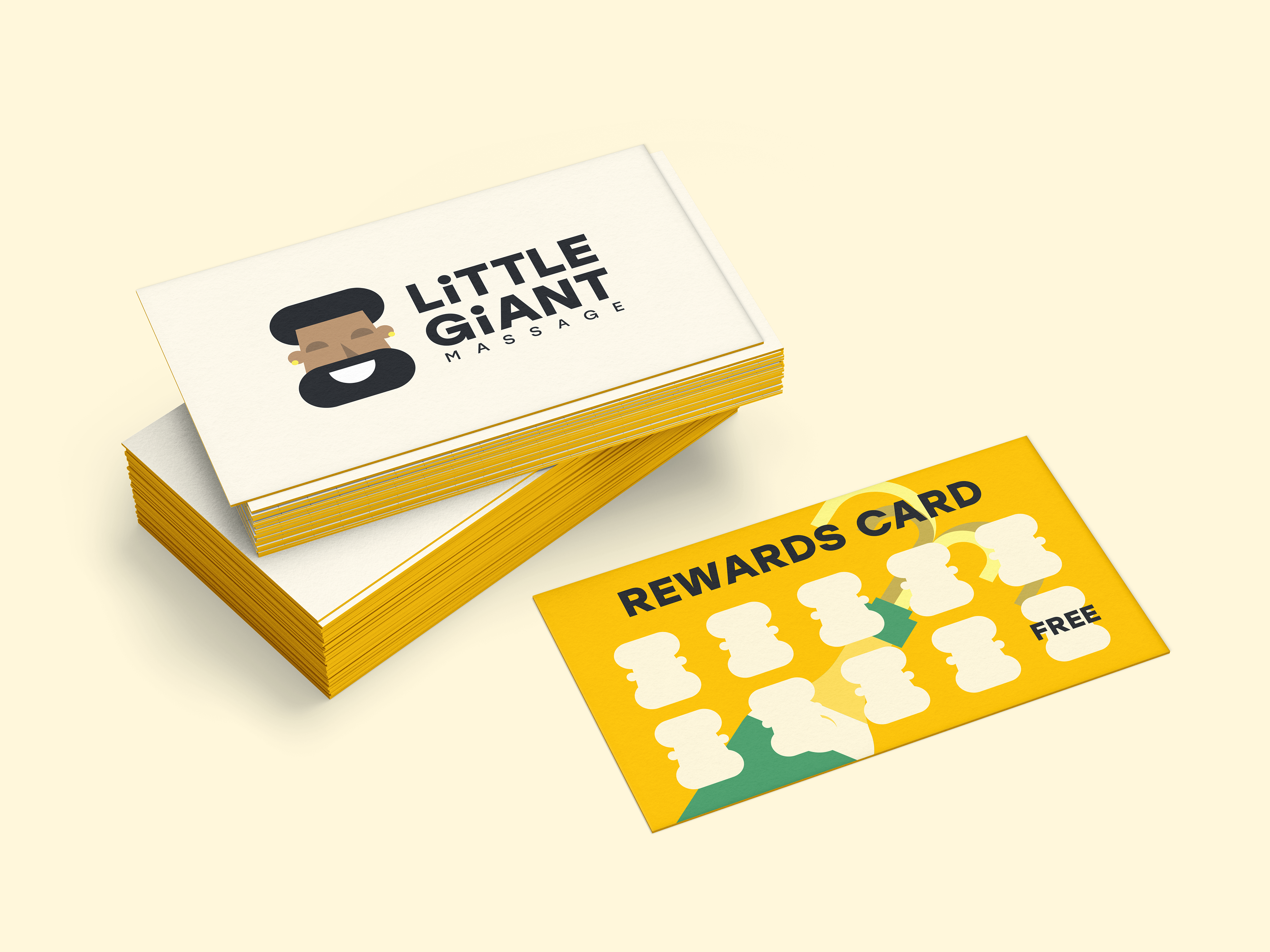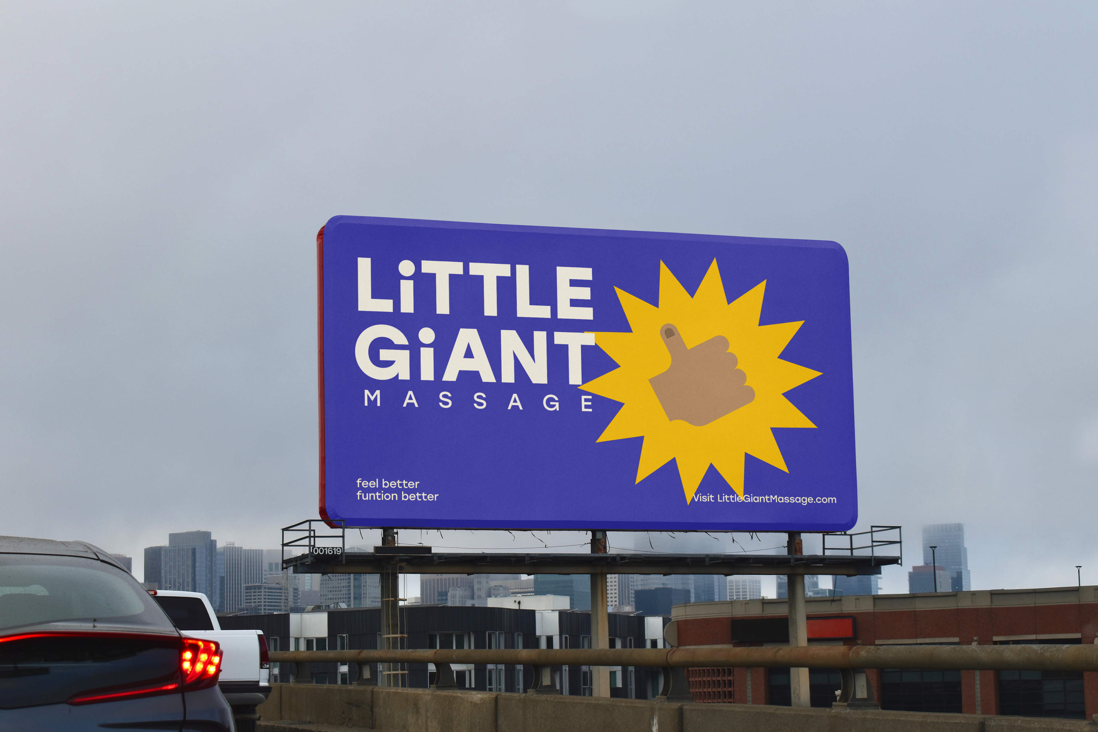 The client came to me wanting to stand out in the massage therapist industry as someone and capitalize on his unique appearance (he's 6'5) and personality. From this I crafted the solution of the Little Giant, boasting his charmingly warm personality and making his height difference appear friendly.